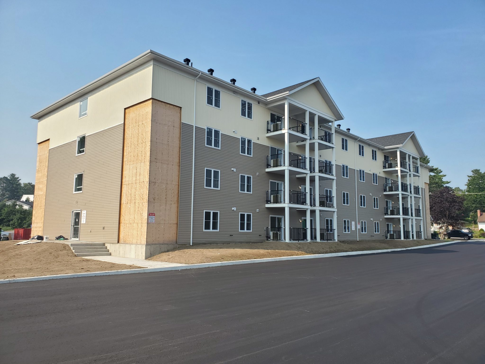 The team at TSH Development Group is very excited to announce the arrival of our newest multi unit complex located in the heart of Deep River, Ontario. This state of the art, high efficiency building contains 32 spacious suites each of which offers comfortable, secure and modern living. There are 8 suites on each floor. Parking, the lobby and all suites can be accessed by either side (2) entrance and the centrally located elevator; depending on whether you are heading to your car or out for a walk. All suites share the same 1,000 sqft. layout and provides accessible and open concept living with a large Master and Spare bedroom. In-suite storage, external storage and a large balcony are all included.